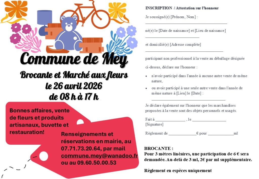 Vous trouverez ci-joint le flyer contenant les informations nécessaires pour réserver un emplacement à la brocante.